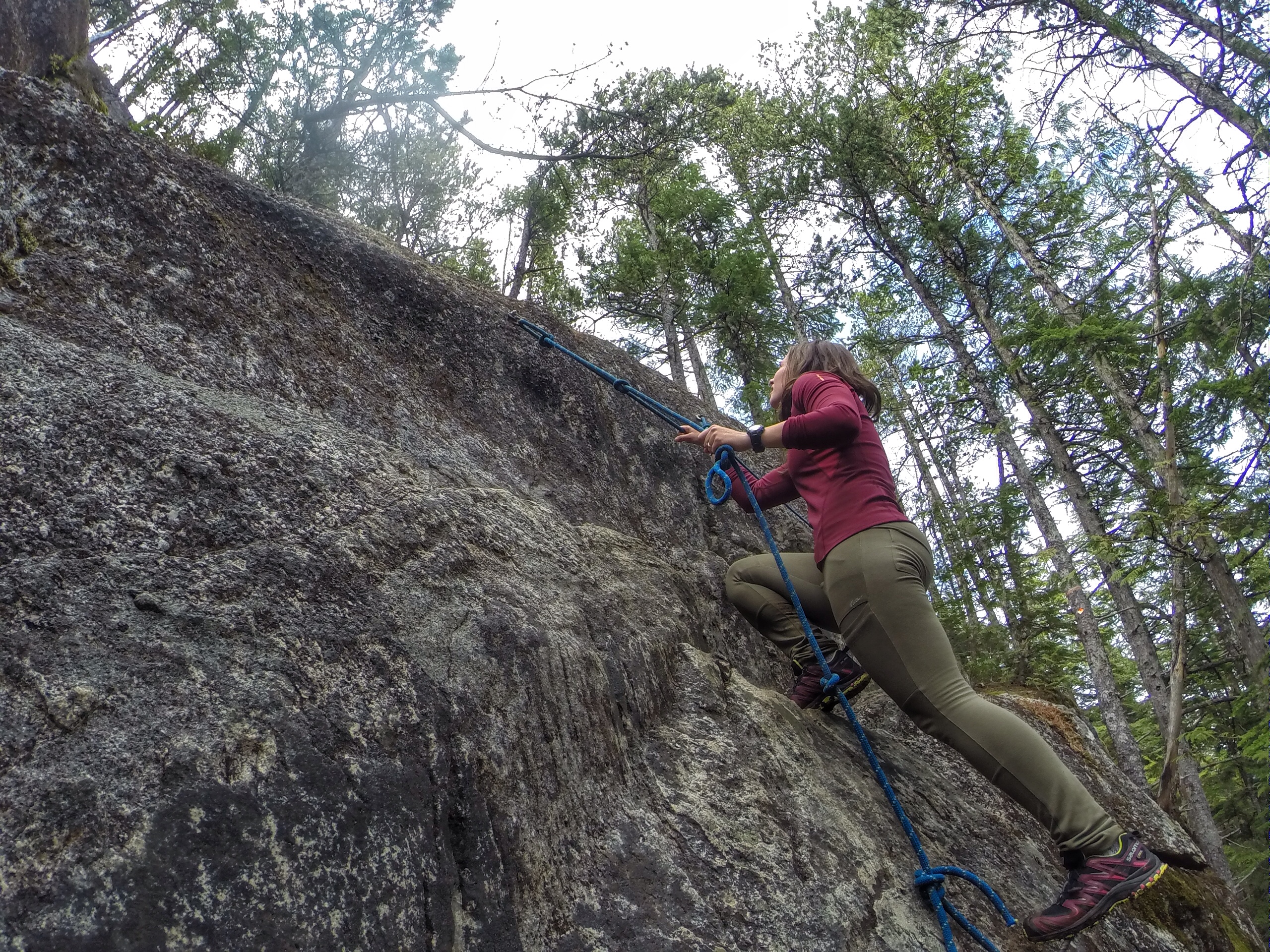 On most trails you will use a rope as a guide to help you up a steep section of rock or hill. Never using the rope entirely or climbing it completely. But it can be a great tool for your workout! Use these types of areas to do one arm pulls and try to only use your feet as fall protection. Always be sure to inspect the rope and knot before trying this multiple times or bring your own up!